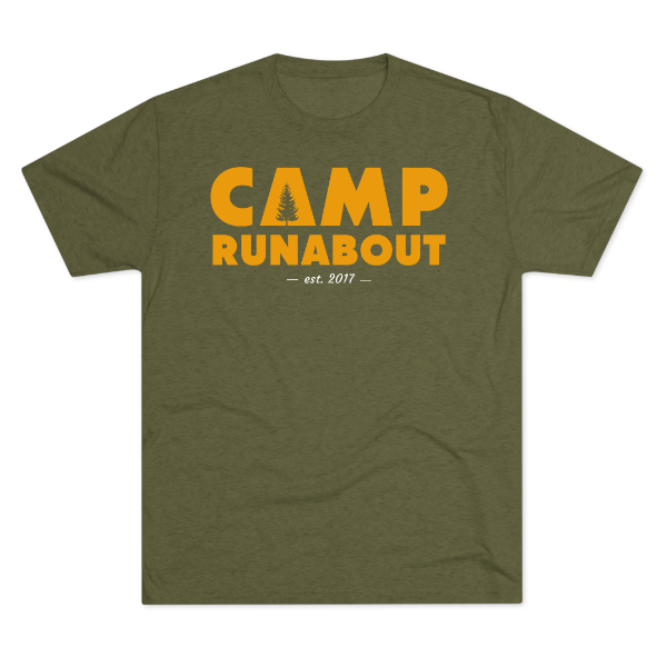 The Camp Runabout Heritage Tee embodies bold, simple style with a nod to our roots. Made from a super-soft tri-blend of 50% polyester, 25% combed ringspun cotton, and 25% rayon, this lightweight shirt offers the perfect balance of comfort, stretch, and durability. Designed with a regular fit on the trusted Next Level 6010, it’s built to move with you from trail runs to fireside hangs. The front graphic features oversized CAMP RUNABOUT lettering with a pine tree tucked into the “A” and an “est. 2017” detail, celebrating where it all began—making this tee an instant favorite for everyday wear and camp memories alike.