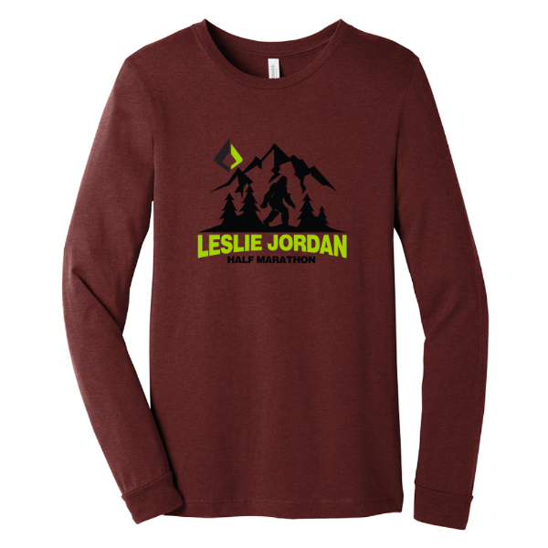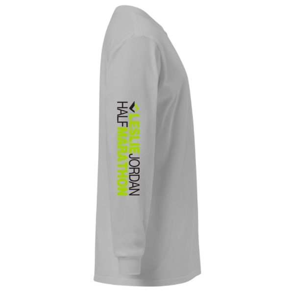 Built for cooler miles and everyday movement. This long sleeve heather tee delivers lightweight coverage without slowing you down, with a soft feel that stays comfortable from warm-up to wind-down. Designed to layer easily and move with you, it is finished with Leslie Jordan Half Marathon graphics that mark the work you put in.