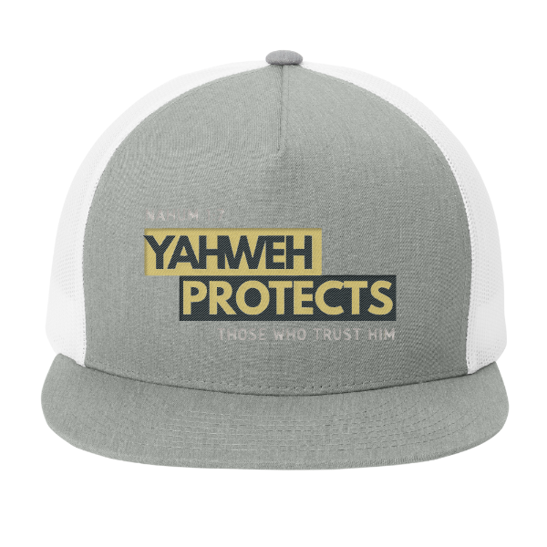 Classic 5-Panel Trucker Hat! Mesh back, with a flat bill.